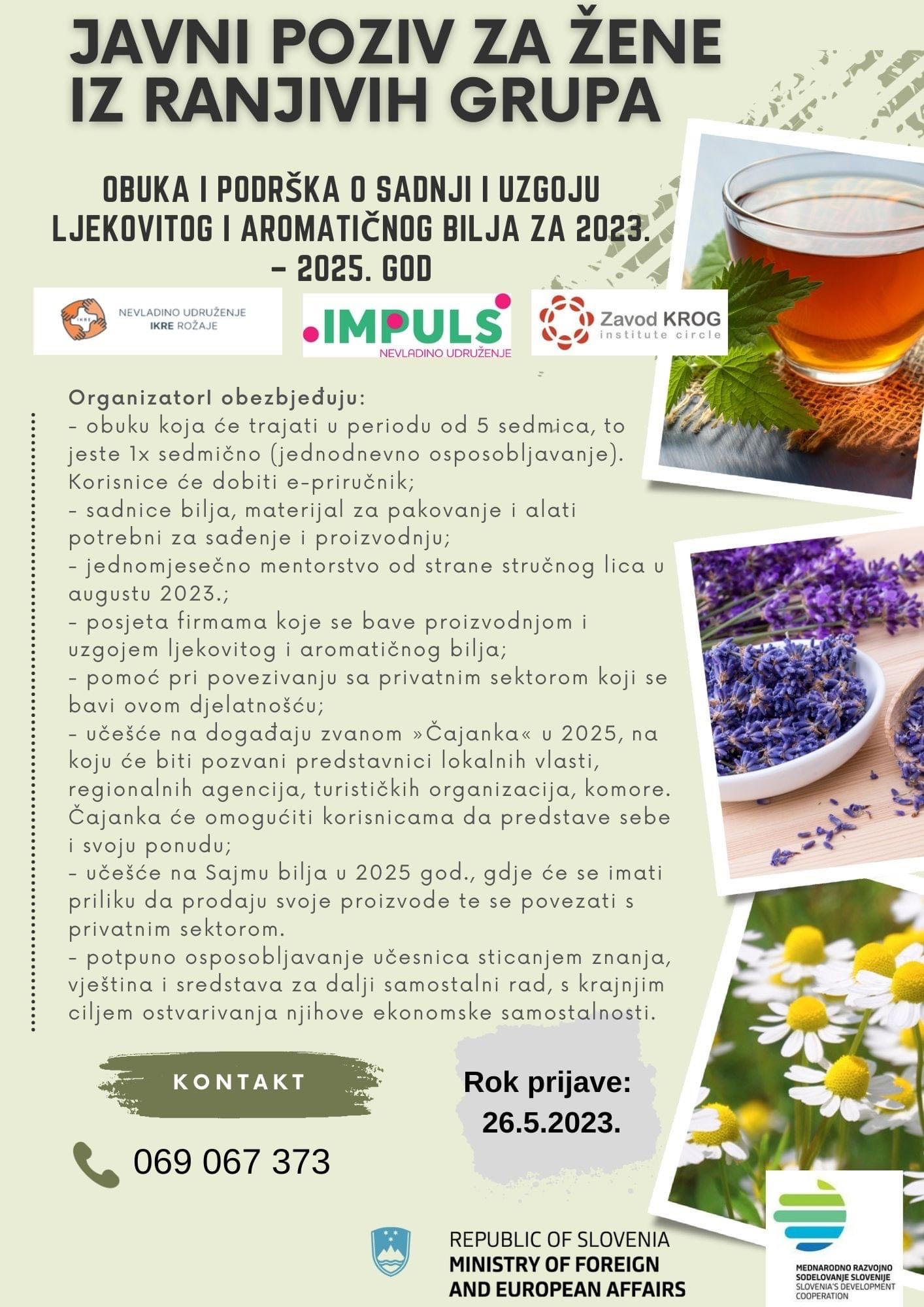 Sadržaj javnog poziva je isključiva odgovornost Zavoda Krog, NVU Impuls i NVO Ikre i ni na koji način se ne može smatrati da odražava stvavove Ministarstva za vanjske i evropske poslove Slovenije.